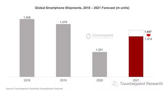 - 此前,Counterpoint猜测全球智能手机出货量增加9%。