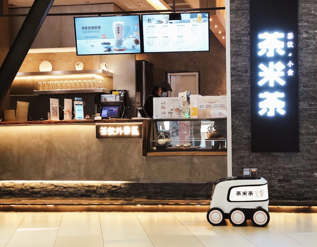 「优时小车」便是一辆这样招引眼球的无人售货小车,它自在的游走在商场人流间,肚子里装着现做的奶茶或甜品,在人群中叫卖。有人有爱好,它便停下来出示产品和付款码,把货卖完了,它就会主动回店,补货后再动身,卖力程度不亚于一个娴熟的销售员。