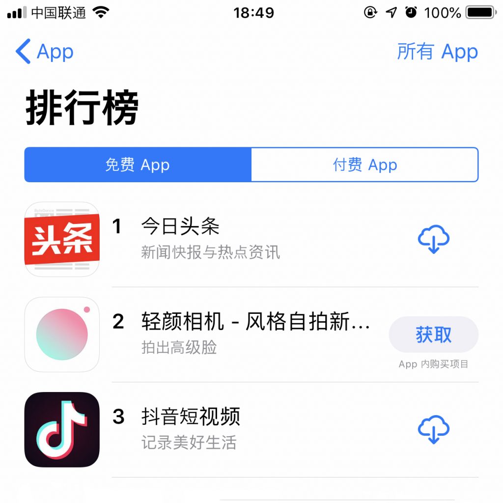 后,10 月 10 日来到北京,与北大附中向阳未来校园学生沟通,并在 10 月 11 日下午于今天头条母公司字节跳动总部与张一鸣碰头。偶然的是,现在苹果 App Store 我国区免费榜排名前三的 app “今天头条”、“轻颜相机”、“抖音”均来自字节跳动及其子公司。